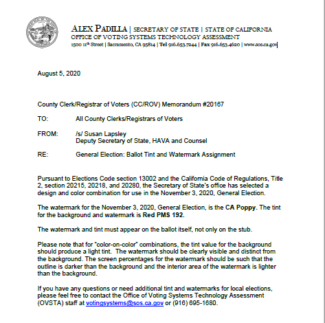 County Clerk/Registrar of Voters (CC/ROV) Memorandum #20167