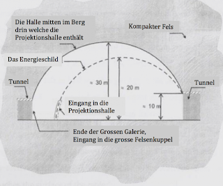 dieser Halle gibt, der etwa 60 Meter von der Erdoberfläche entfernt im Inneren