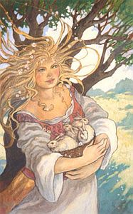 Ebenso wie anlässlich der kulturellen Überlagerung Teile von Samonios am 1. November zu Weihnachten und Silvester kamen, wurden Inhalte von Beltane am 1. Mai zu Ostern und Pfingsten umgedeutet und verschoben. Ende des 17. Jh., Quellen erwähnen 1682, erscheint im Zusammenhang mit dem Osterei der Osterhase. Die Symbolik in Form vom Drei-Hasen-Ohren-Bild war im Mittelalter weit verbreitet. Das Auftauchen des die Eier bringenden Osterhasen hat vermutlich auch einen Zusammenhang mit der Verfolgung angeblicher Hexen, welche nach 1700 stark abnahm, [lesen Sie dazu bitte Walpurgis].